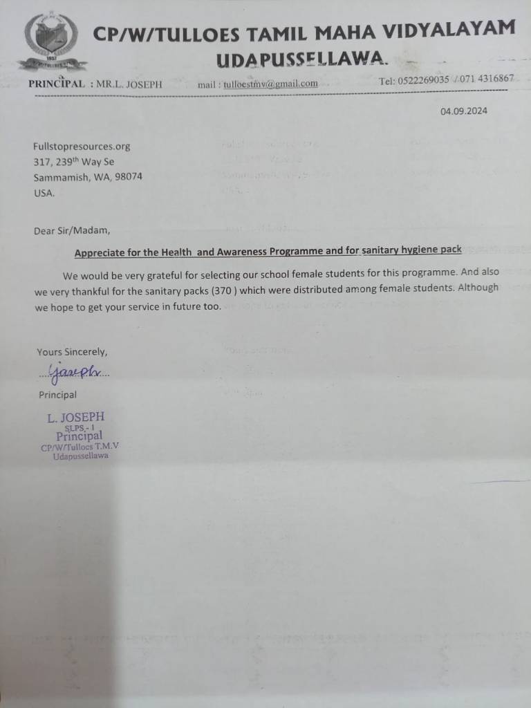 We at Full Stop Resources are so excited to hear that the Sri Lankan government is committing to providing free feminine hygiene products for students in 2024. Our main goal is to help eradicate period poverty and this development is one big step towards that goal. Due to this new initiative, future projects will be more focused on health education and providing hygiene products to women of all ages.